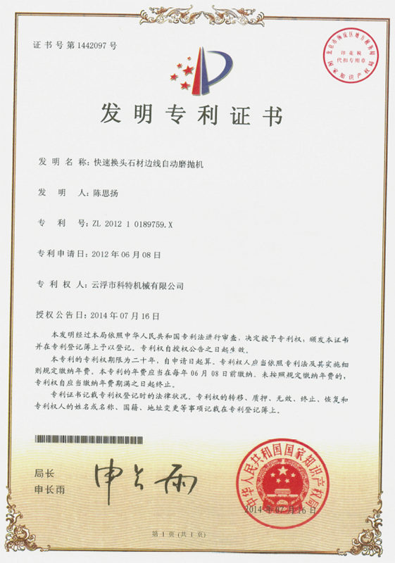 企業(yè)組建了“云浮市石材機(jī)械裝備工程技術(shù)研究開發(fā)中心”,并與高校和科研院所密切合作,致力于光機(jī)電一體化產(chǎn)品的研發(fā)、生產(chǎn)、銷售和服務(wù)。主要產(chǎn)品有框架鋸、全自動(dòng)連續(xù)磨拋機(jī)、橋式自動(dòng)切割機(jī)、全自動(dòng)仿形石線機(jī)、數(shù)控金剛石繩鋸、裁切機(jī)等。產(chǎn)品具有自動(dòng)化程度高、加工精度高和生產(chǎn)效率高等特點(diǎn)。產(chǎn)品除國內(nèi)銷售外,還出口到歐美、東南亞、韓國、印度、中東、非洲、俄羅斯、澳大利亞等國家和地區(qū),深受用戶好評(píng)。“橋式自動(dòng)切割機(jī)”被認(rèn)定為廣東省高新技術(shù)產(chǎn)品,擁有發(fā)明專利1項(xiàng)、實(shí)用新型專利1項(xiàng)。